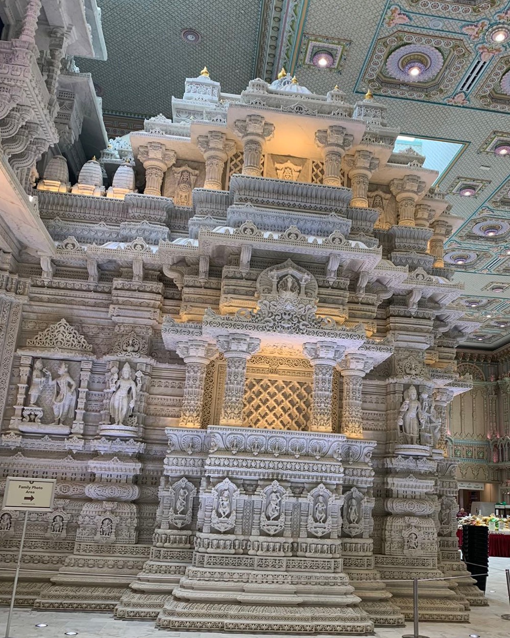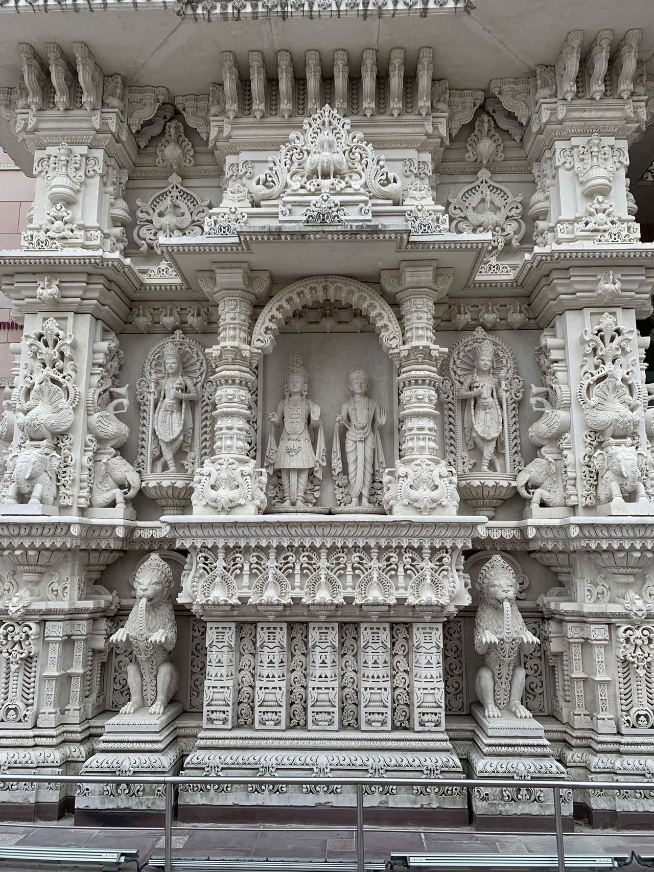 霞夫婦約我們去參觀一個印度廟宇。這是一個金壁輝煋,雕梁畫棟,製作極其精美的建築,是一個非常漂亮的巨形工藝品。一磚一石均來自印度,所有的花紋塑像全是手工雕琢,精細無比,巧奪天工。令人嘆為觀止!