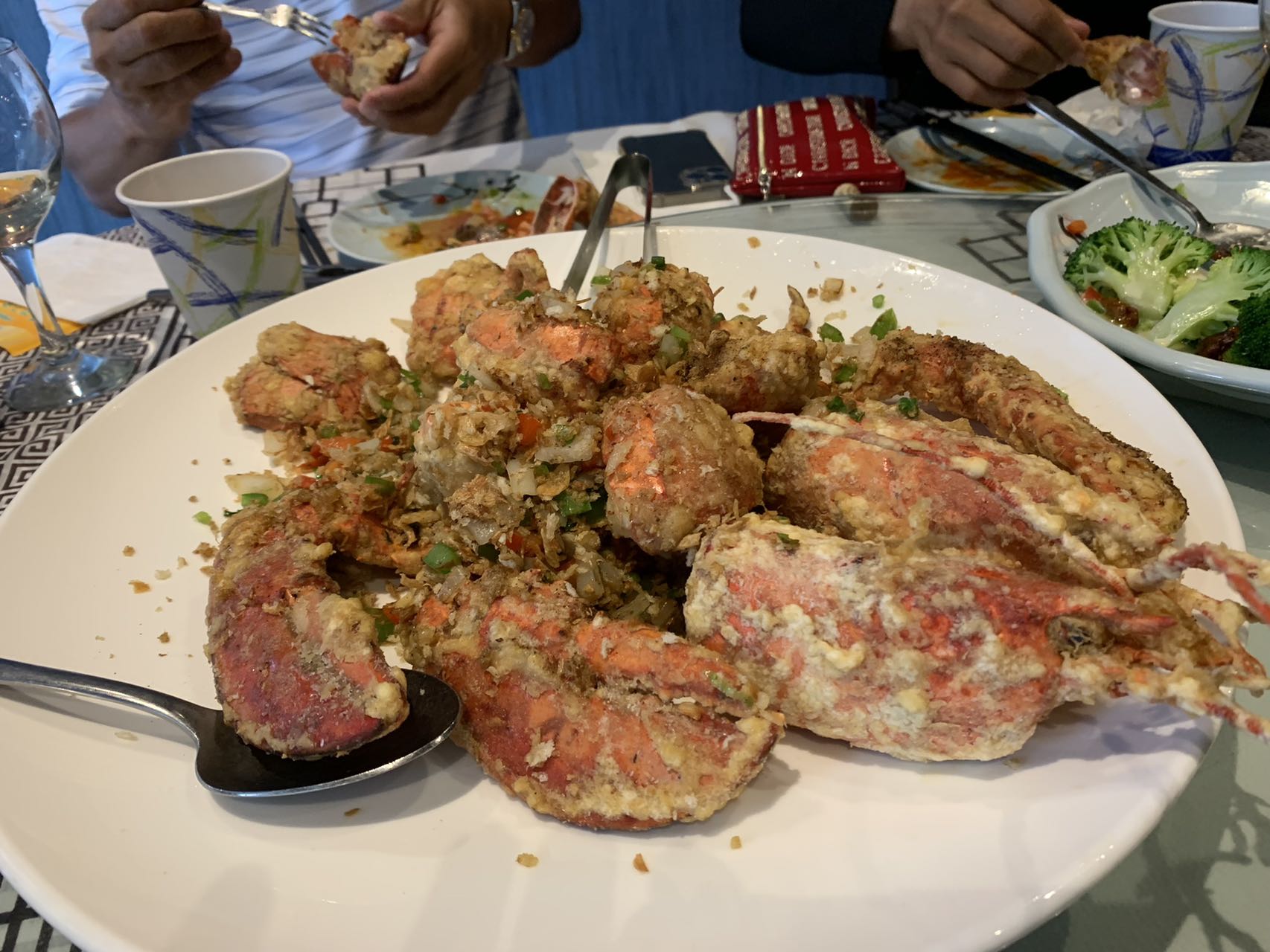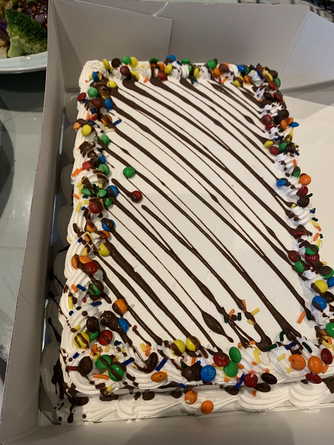 霞點了很多好吃的,大龍蝦,糖醋魚,夫妻肺片,核桃蝦、孜然羊肉、小炒牛肉、魚香茄子、粟米羹⋯⋯。一大桌子像過年一樣(現在寫著這些菜名,依然口齒留香,耳邊又響起了我们快樂的笑聲)。小王還帶了一個大大的冰淇淋蛋糕作為飯後甜點。讓我饞延欲滴。