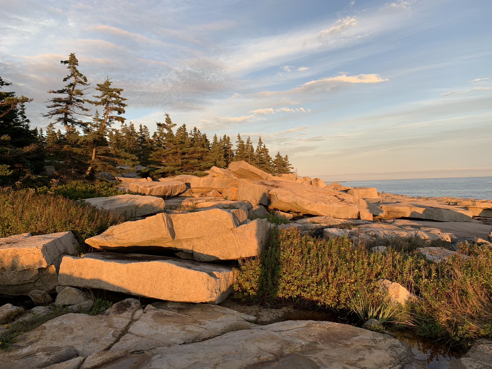 傍晚来到岛上最主要的景点。Schoodic Point,也是 Schoodic半岛的最南端。这是古代火山活动形成的巨大的岩层。