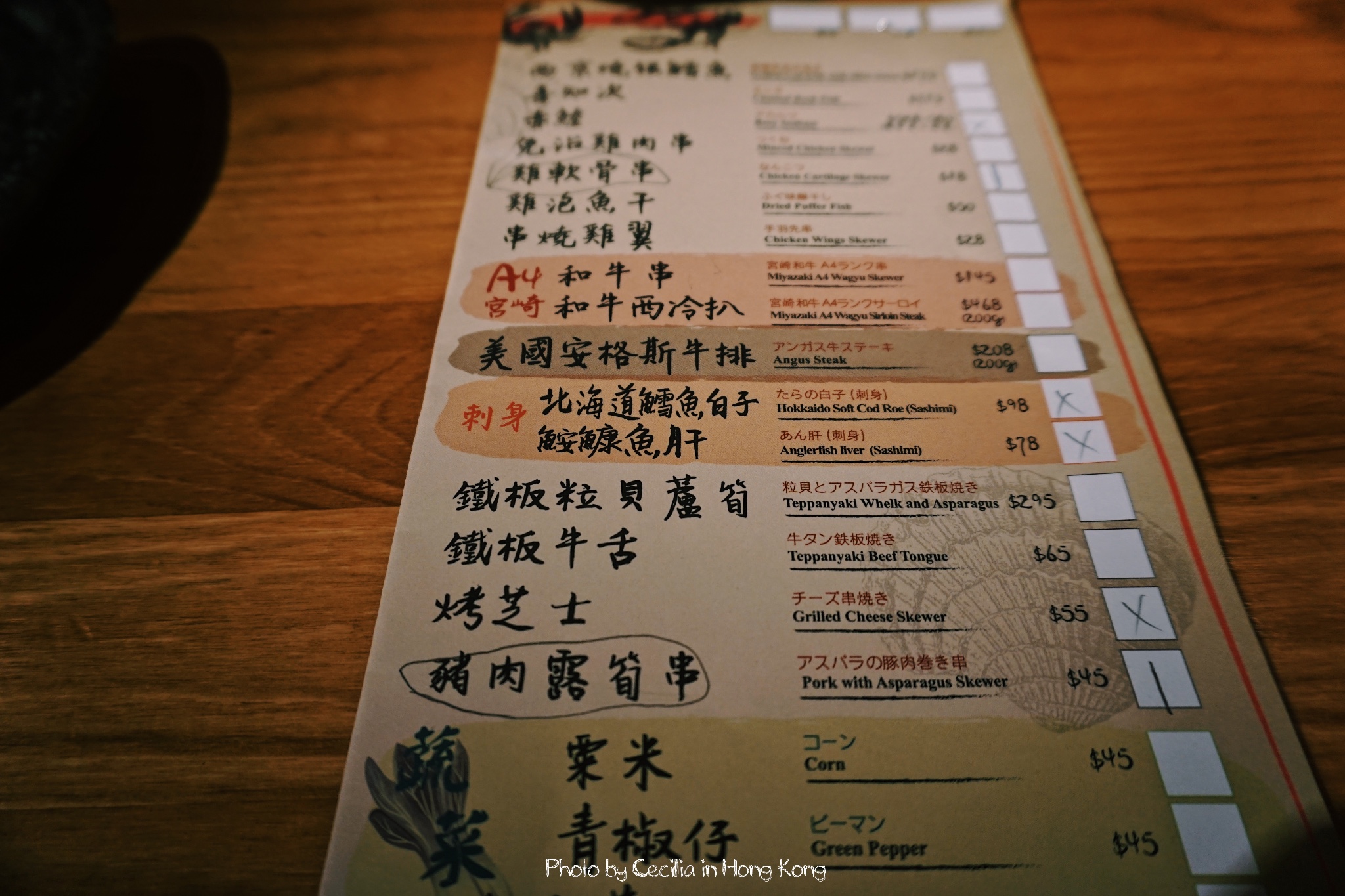 这里的串烤几乎是一串的分量,所以菜单上大多的标价就是一串的标价。