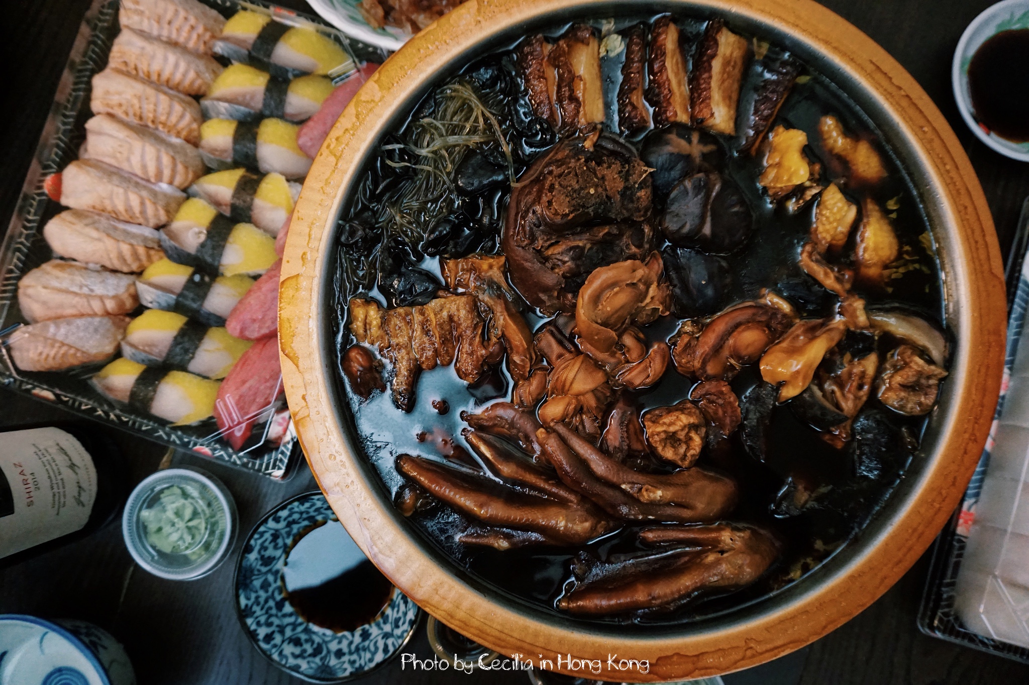 香港的除夕夜,还是要来一锅盆菜才有味儿。赶在商铺关门前,取回了我们的盆菜。