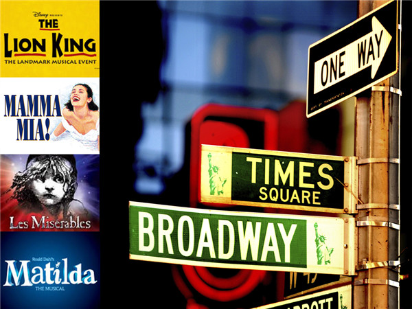 百老汇这个名字来自曼哈顿的一条马路的中文翻译——Broadway,经过近百年的时间,这条马路已经发展成为一个街区,而这三个字已经成为一种现象,一个门类,成为全球最顶尖的舞台剧代名词。每天晚上,在百老汇区域,有数个剧院同时上演着全球最顶级的剧目,来自全球最顶尖的舞台剧演员汇集在这里,为来自全世界的舞台剧爱好者、朝圣者上演着一幕幕精彩绝伦的大戏。如果不看一场百老汇,千万别说你来过纽约。