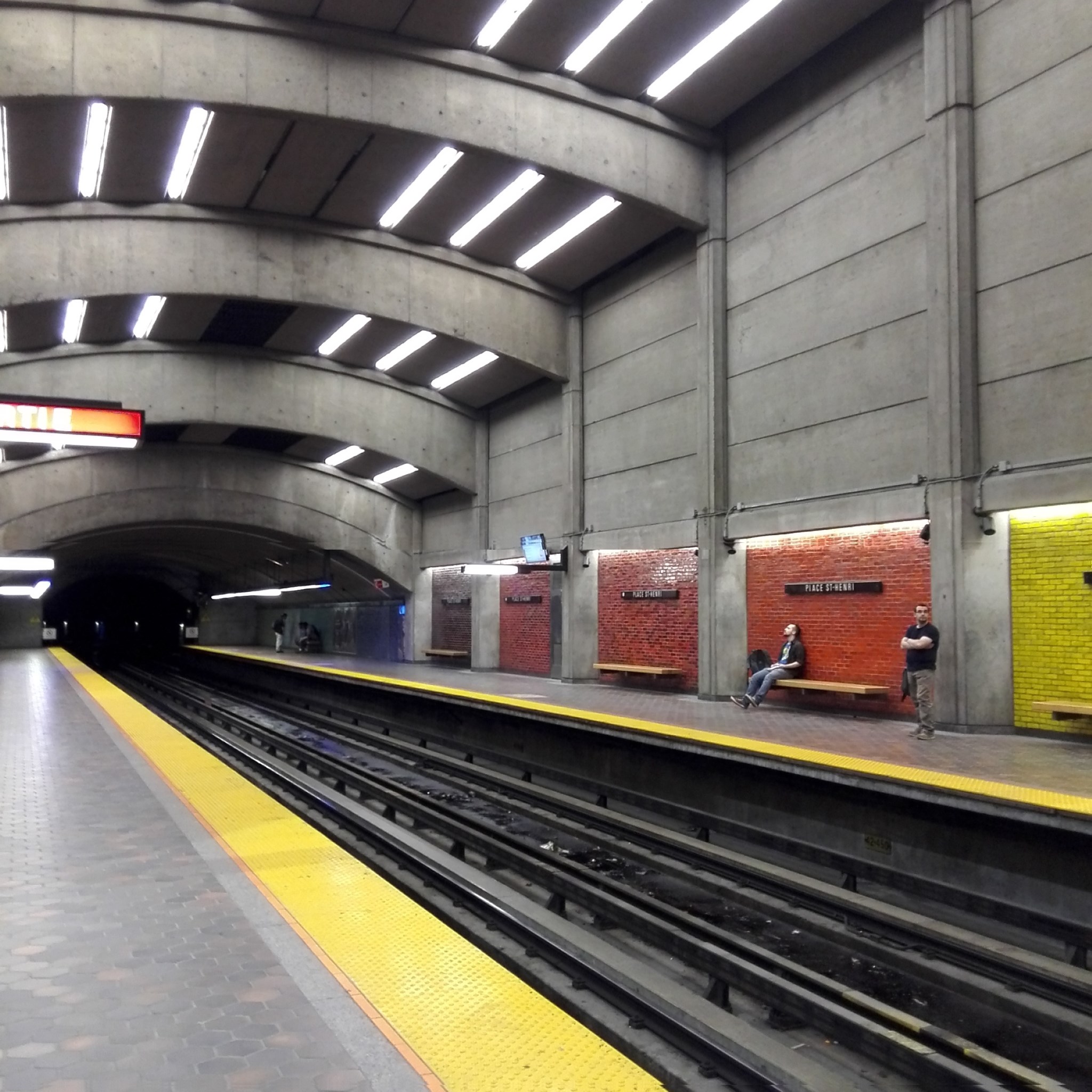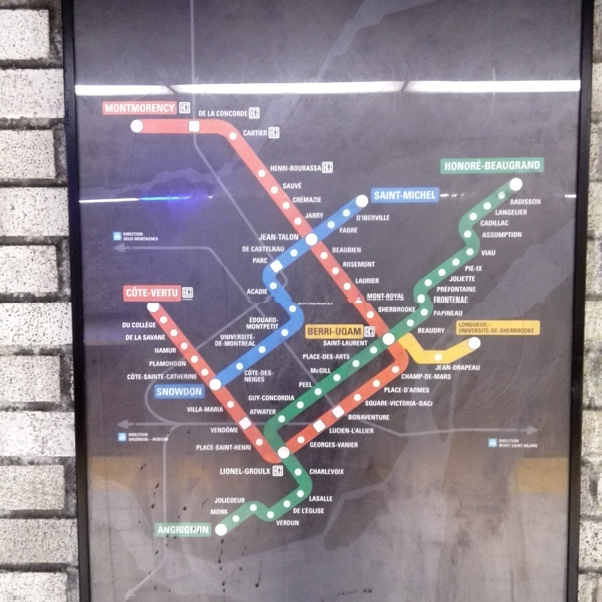 这是蒙特利尔的地铁,很简陋,直接钢筋水泥。地铁本身也是那种很老的型号。值得去体验。不过,加拿大和美国好像都一样,太浪费资源了,地铁票不使用可回收的磁卡或者硬币之类的,无论是单程还是双程地铁票,都是一张纸卡,用完就作废,所以,经常可以看到一些垃圾桶、角落里,丢得满地地铁票。反而在多伦多是使用硬币。