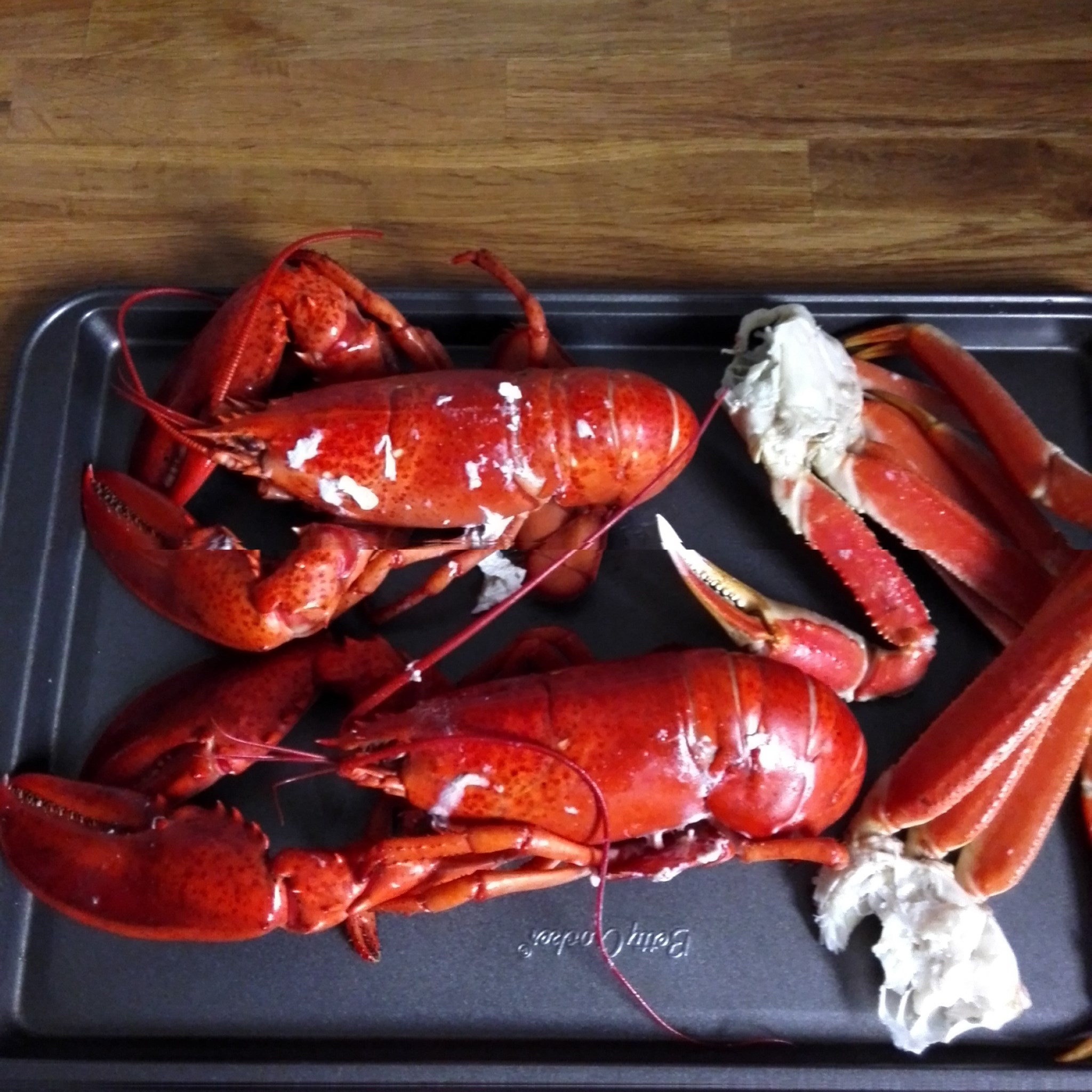 这是我们在附近一家超市里购买的,超市里海鲜品种多,除了我们吃的小龙虾、皇帝蟹,还有青壳、三文鱼、金枪鱼、银雪鱼等等,都超级便宜。我们买的小龙虾和皇帝蟹,看个头应该知道有多大(一个西餐盘基本就满了),每个8加币左右,约合人民币不到40元,后来在国内某超市,我看到同样大小的进口小龙虾和皇帝蟹,每只均不少于160元人民币,简直就是暴利啊!
