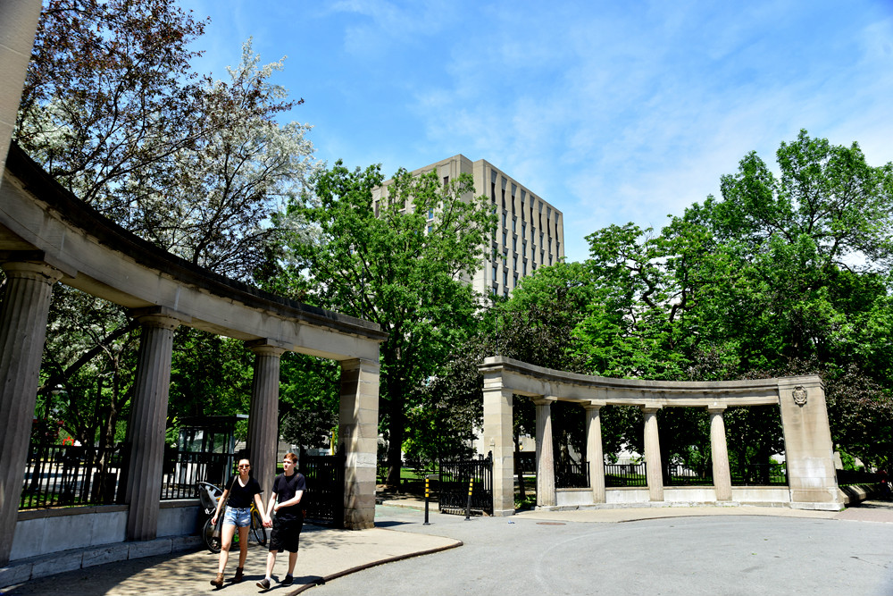 麦吉尔大学在加拿大是顶尖大学之一,在北美也是名列前茅的。据说特别是数学专业非常突出,只是,有人录取了也不去,所以,就到校园里去看看吧。没想到的是,坐落在皇家山脚下的麦吉尔大学,与国内大学有点相似,就是围墙!这在北美还是很少见的,而且貌似也不大,这也许更魁北克的气候有关系,一年里近10多个月的冷,还是抱团取暖好。