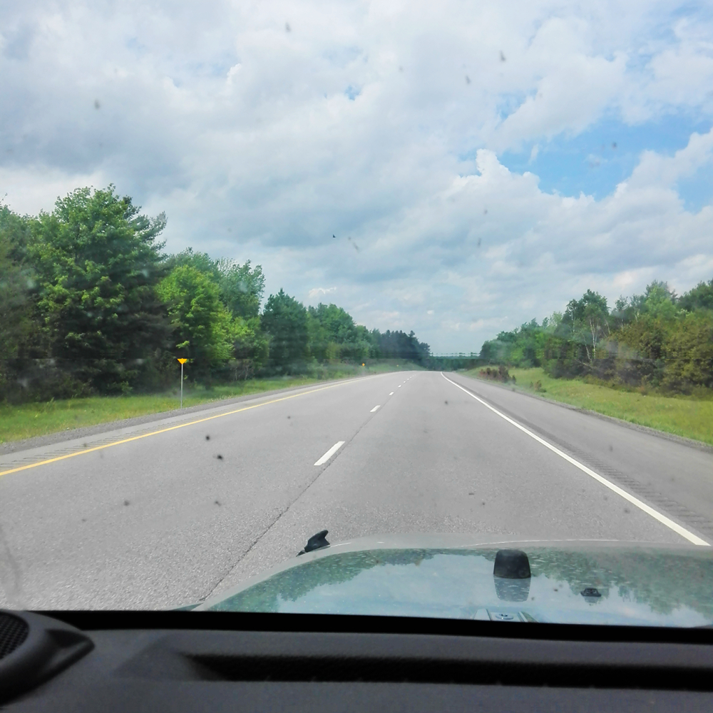 第二张图片是从渥太华前往蒙特利尔的高速公路。加拿大的高速公路,出了市区以后,基本就是两条单边道路中间由一些植物分割开来,路边也没有很明显的隔离设施,实话说,很方便就看到对面的道路上去的,因为高速基本免费,所以也没问题。