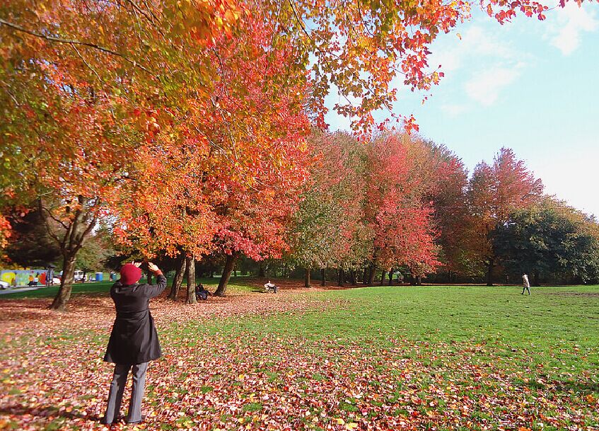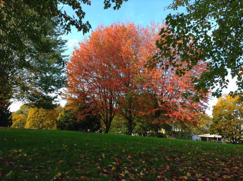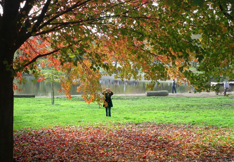 与老公昨天去那里,晒太阳拍照片赏秋叶。