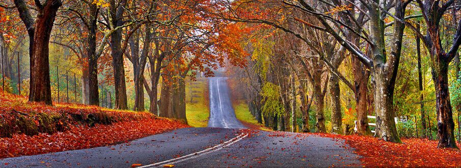 车子越向蓝山靠近,两边景色越来越美。层峦叠嶂,五彩缤纷,满山遍野的枫树,引得我直惊叹!九点半我们到达了Collingwood。两边的景色就和仙境一样。我兴奋的在雨中跑来跑去,踩在枫叶铺盖的绿草地上,根本不管在泥泞中湿透的鞋。我恍若仙境中的仙女,在美丽的风光中漂游。一位骑自行车遛狗的老人告诉我们,再往上一段路后,就有一个制高点可以腑瞰满山遍野的枫景,再下来沿着盘山公路开,去到另一个制高点,景色会更美。
