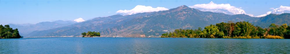 从首都加德满都西行约二百公里,就是尼泊尔的第二大城市博卡拉(Pokhara)。 她身处举世闻名的喜马拉雅山南坡谷地,依偎在终年积雪众多世界最高最美的山峰下--如安娜普尔娜I, II,III峰,南峰,道拉吉里峰,马纳斯鲁峰,以及最低的约七千米高的鱼尾峰。博卡拉尼泊尔语义为“湖城”, 美丽迷人的尼泊尔第二大湖-费瓦湖(Phewa),即在她的中心微波清漾,倒映雪山,形成明媚迷人的湖光山色。这里海拔仅约八百米,属热带海洋性季风气候,四季温暖湿润, 因而遍地繁花似锦,树木葱茏,和周围均高八千米壮丽的雪山风光形成强烈对比。而且市区人口还不足十万,比起热闹喧嚣的加德满都来要恬静很多。她怎么会不成为尼泊尔乃至全世界最受欢迎的旅游盛地之一呢?!