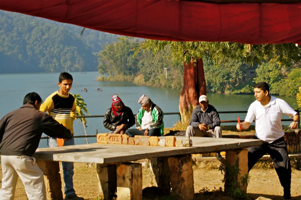 然后我们在费瓦湖边的旅游区信步流连在酒吧街,购物街。当然发现了中餐馆-我以为这是“天堂”必有之一。街上外地游人如织,到处可见时髦运动兜售处,如 有趣又刺激的雪山滑翔。也在邻近地区随便拍下一些当地人的生活景象,如男人们的湖边活动,妇孺们在街头巷尾。