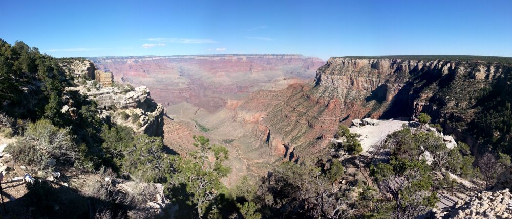 九天驱车四千五百公里(两千八百英里),我们终于完成了梦寐已久的徒步穿越美国科罗拉多大峡谷。 科罗拉多大峡谷(Grand Canyon)位于美国亚利桑那州西北部,是科罗拉多河经过百万年的冲蚀而形成的,色彩斑斓,峭壁险峻。 上中学的时候学习美国地理就对黄石国家公园和科罗拉多大峡谷留下了深刻的印象。 多年前就探访过黄石国家公园, 却一直没有机会目睹大峡谷的真容。去年游玩西部大环圈的旅途上,当时距离大峡谷只有二十几英里的路程,却和大峡谷擦肩而过,因为我早已计划单独深入的了解大峡谷。