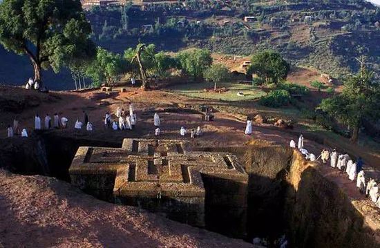 国王按照神谕在埃塞俄比亚北部海拔2600米的岩石高原上,动用2万人工,花了24年的时间凿出了11座岩石教堂,人们将这里称为拉利贝拉。
