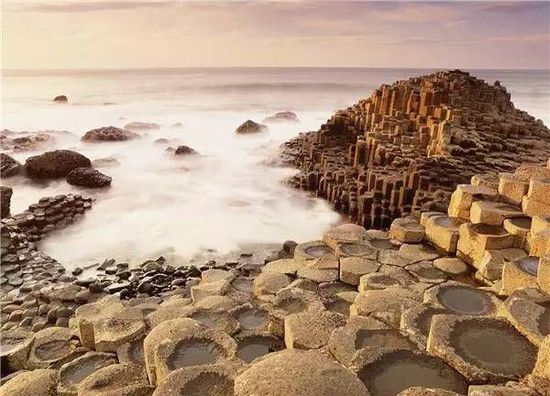 其景观有似巨人所造,固有“巨人古道”之美称。是6000万年前太古时代火山喷发后熔岩冷却凝固而形成的。如此排列有序的石柱,不禁让人怀疑不是天然雕琢而是人工有意堆积而成的。