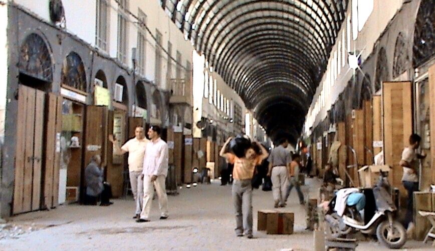 从保罗二世访问叙利亚到 2011年3月动乱开始的这段时间里,叙利亚有过和平发展的十年。和平年代的大马士革的游人络绎不绝。我住的旅馆基本上是满客。旅馆的可选性很大,从几十 到几百美金,各种档次的都有。在大马士革走街串巷给人的印象不错,衣食住行也都很方便。黄色的出租车收费规范。不象约旦邻居那样, 上车一个价,下车另一个价。大马士革公交系统四通八达。中巴和小巴穿梭于大马士革和周边区域。还有通往黎巴嫩和安曼等周边国家城市的大巴,十分方便。