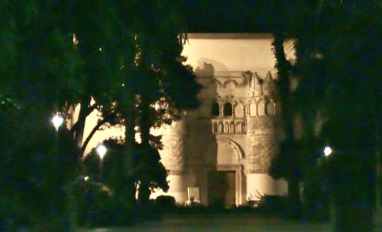 下边这张夜景是站在叙利亚国家博物馆的大门口拍的,这门楼子据说是件真正的古物。据说它的原产地是帕尔米拉的罗马古城。把原来在帕尔米拉的门楼子搬过来复原,不知算保护文物,还是破坏文物?