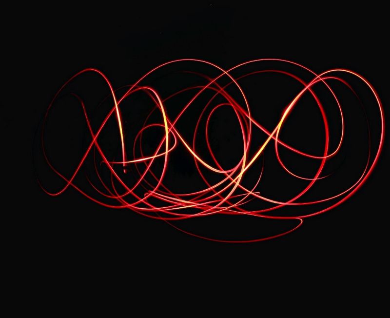 我想一想决定用红色头灯画个抽象画,我拿着红头灯,非常卖力气的上下翻飞,画园圈,荡秋千,出来一看就成这样了!