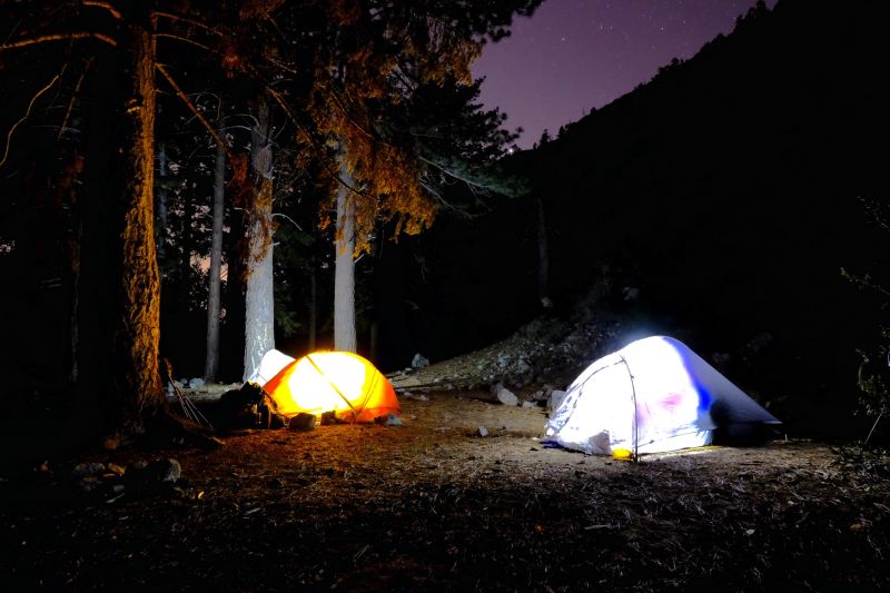 后来又玩了一会儿夜幕下帐篷里的灯光,看看左边wade漂亮的橙色帐篷亮灯的样子,右边是我们灰不溜秋的帐篷。