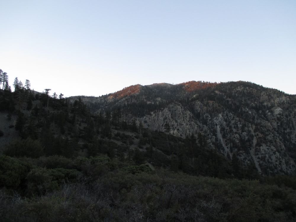 我哆哆嗦嗦的爬上乱石,等待日出,却发现方向不对,看不到日出,只好对着那片山脊拍了几张两片稍微有点日照金山意思的照片,你们自己找找看有没有。