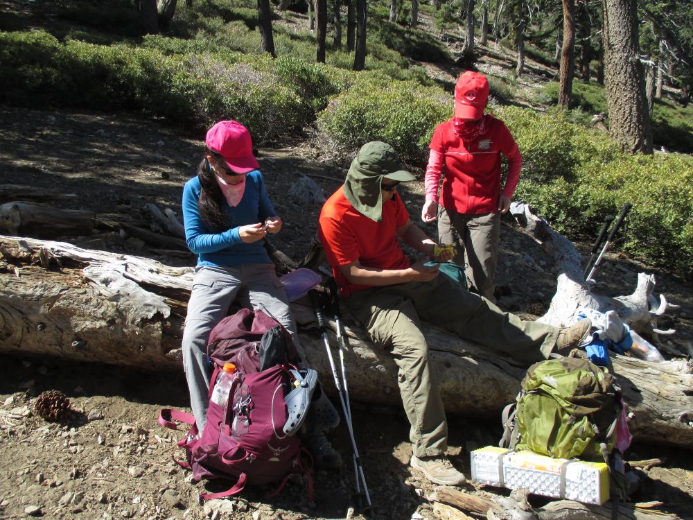 昨天我们把wade的水用了许多,等到了icehouse saddle时,他们的水剩无多,本打算还继续走到Timber,可因为水不多,就休息了一会又回身下山了