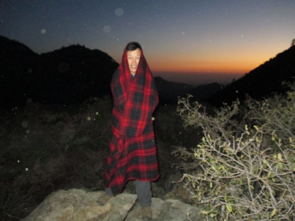山风实在太冷,玩到了9;00大家就都回到各自的帐篷。用wade的话说“九点多就钻进帐篷开始呼噜比赛”我可能因为喝了咖啡还是太兴奋睡不着,一边看着“一只绣花鞋”的书,一边听着此起彼伏的呼噜声。朦朦胧胧中总觉得听到附近有野生动物的走路声,不时的竖起耳朵辨别一番。