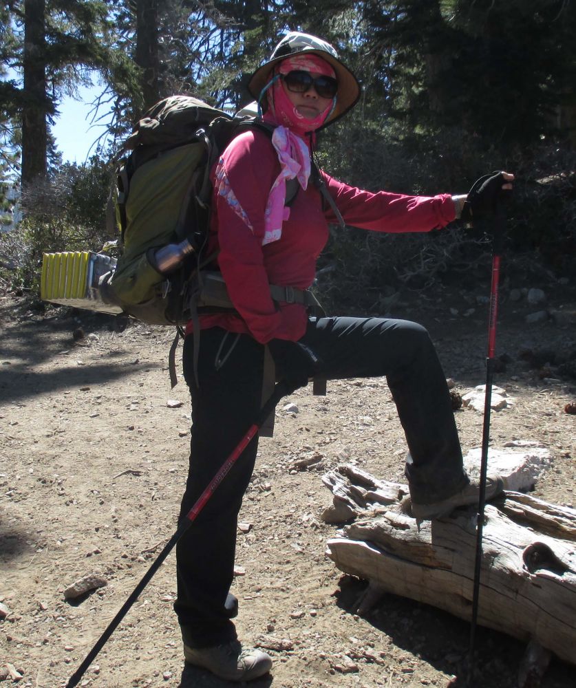 还好这次第一站是2.5麦的露营地,对我们常爬山的人来说不算远。可谁知负重爬山完全是两码事。我因一直爬山都故意背负约十多磅的东西,倒觉得还能承受。可被我拖来的我家领导可惨了,没走多远就一屁股坐在一个树桩上,还将背包卸下,让双肩休息。知道他不习惯负重,告诫他休息不要卸下背包。果然当他再次起来背包时因背包太沉没有运气,甩包,咬牙切齿一气呵成,背包一下滑下来,差点掉到坡下。