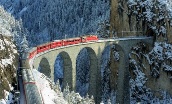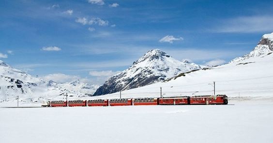 1910年建成通车的瑞士伯尔尼纳快车(Bernina Express),是世界上最著名的高山窄轨铁路之一,火车从瑞士启程经过美如天堂的阿尔卑斯山脉到达意大利,沿途的风景之美让世人惊叹,美国国家地理杂志将之评为世界上最美的火车线路。该条线路2008年被联合国列入世界文化遗产名录。