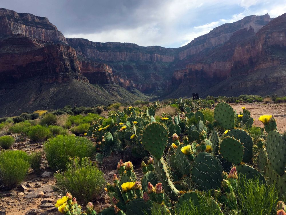 两位美丽的Park Rangers告诉我们次日大约11点会有storm,大姐决定我们一大早起床,早点开始爬4.5 迈,上升3100 尺最艰难,最后的一段路。赶在storm前爬到大峡谷上面。