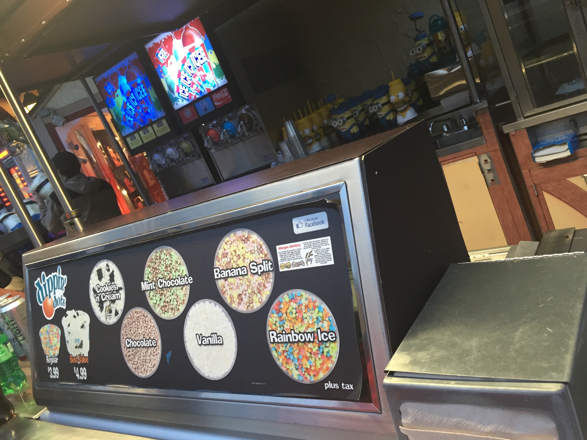 然后突然觉得自己胆子好像也蛮大的,哈哈~大家可以带一些quarter and 1 cent,然后可以做纪念币。玩儿完下园区就去玩儿上园区啦,看到哪个就进哪个,shrek等等,studio tour要看时间表,但是人比较多,需要等很久,刚好排着队吃东西,对啦,去环球影城和迪士尼都可以带吃的和水。studio tour 必玩,真心很棒。玩儿完那个我们去了water world,强烈推荐这个show。由于是冬天,大家千万不要坐在容易湿的地方,因为必湿。另外water world外面有卖dippin dots冰淇淋,味道不错