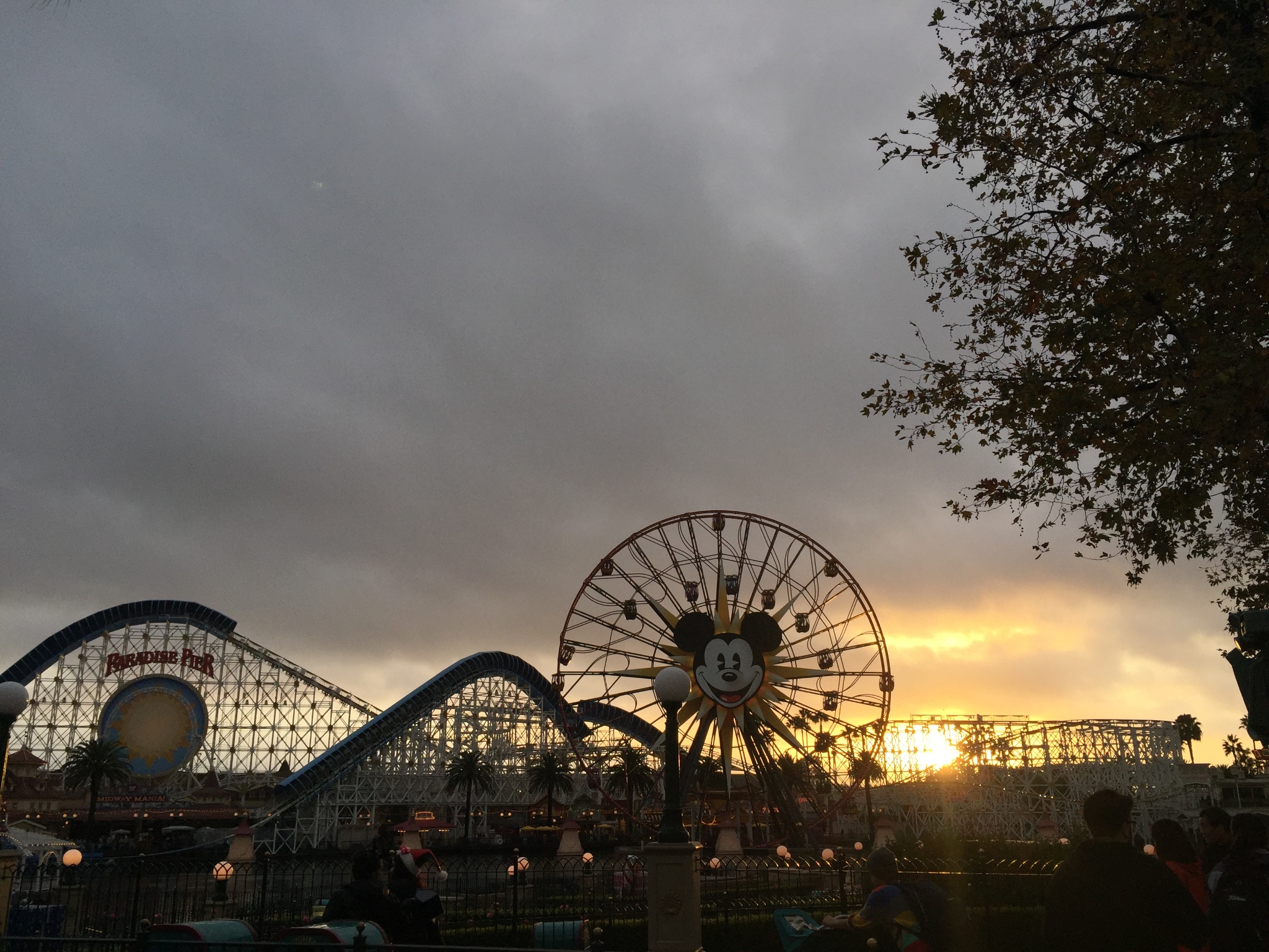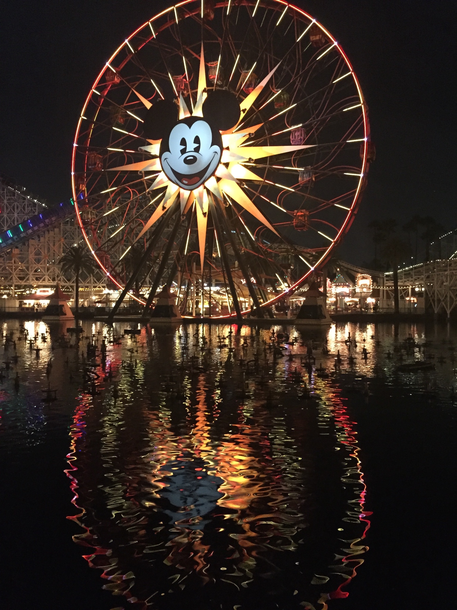 必玩项目:radiator springs racers, soarin over california, grizzly river run, tower of terror, mickey's fun wheel(swing). 大家可以取celebration button,见到服务人员就可以问一下有没有,一般都是庆祝1st visit,仅仅是纪念意义而已~最后一个必去的项目是world of color, 好像是晚上九点才开始,不过可以在soarin over california那里取world of colar 的fast pass,这个fast pass 不受时间限制,也就是说取完这个fast pass之后仍然可以取其他的fast pass,并不会规定多久之后才能取下一张fast pass。我们订的酒店离disney land 比较近,开车也就十几分钟,所以我们下午的时候就回酒店啦,出门的时候可以在手上盖个章,那个章在特殊的灯光下才能看到,然后回酒店休息了好久才拐回去看world of color。你的车也可以再次进入停车场,不会额外收费的。还有一件事就是记住自己停车的位置,否则就悲剧啦