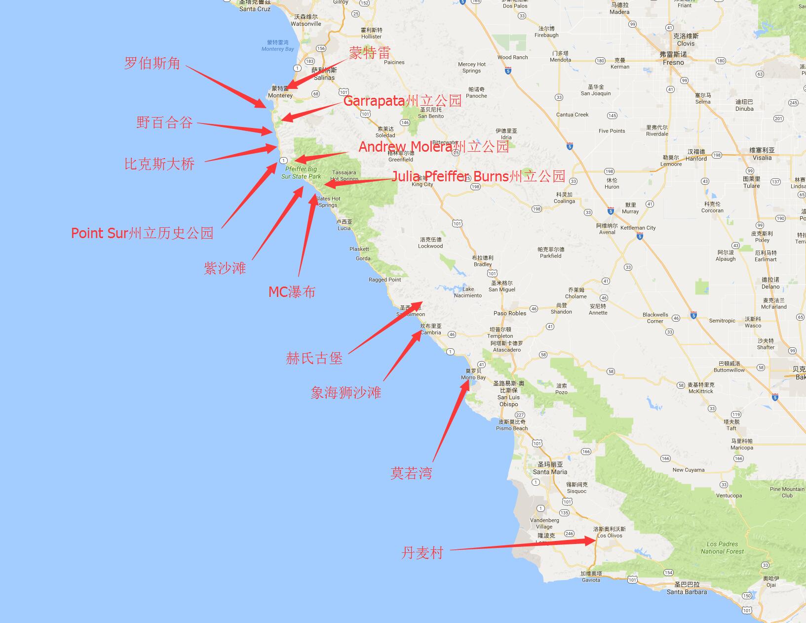 这个走法就不能由洛杉矶往蒙特雷开,就算不去丹麦村、圣塔芭芭拉,圣塔莫尼卡,即使夏天白天再长,抵达大瑟尔也是快天黑了,要是冬天肯定是一片漆黑了。如果只有1天时间走第二和第三部分,为了能够看到最精华的大瑟尔,只能由蒙特雷往洛杉矶走,而放弃第三部分景点,前面走得快点的后面第三部分多看点,前面走的慢的,后面的第三部分就看不到,赶夜路,半夜到洛杉矶。