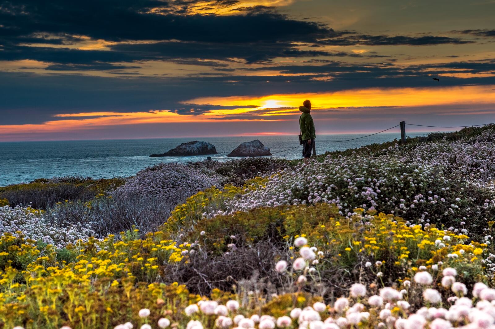 真正一天之中最美的观赏时间是黄昏时分,如果你从洛杉矶或者沿途小镇往蒙特雷走,你刚好能在黄昏时分赶到大瑟尔。这个时候的阳光颜色是很暖的,金灿灿的,斜着照射着蜿蜒的一号公路,比克斯大桥,以及起伏的丘陵草原,和斜插入海的山上,配合着沿途的花花草草,甚是好看,这个时候才是一号公路最美的景色。随随便便一拍就是一张大片。