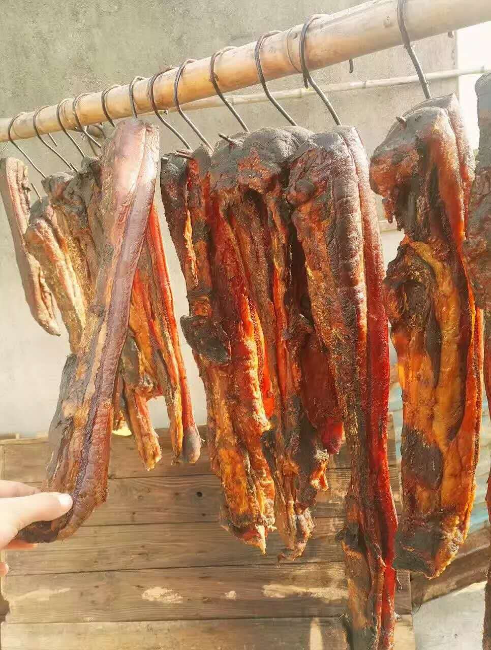 顾名思义,就是在腊月制作的肉品。中国自古以来有在过大年之前杀猪宰羊的习俗,古时候没有冰箱,鲜肉难以保存,智慧的劳动人民想出了一个办法,通过腌制、熏干制作成肉干,有利于保存。并且有多种吃法,或蒸,或炒,或煮,其味道之鲜美,根本就不是用“美味”两个字能表达完整的!